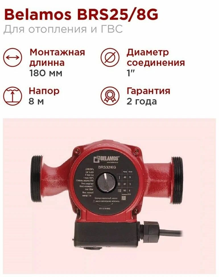 Циркуляционный насос для отопления Беламос (Belamos) BRS32/8G (180мм)