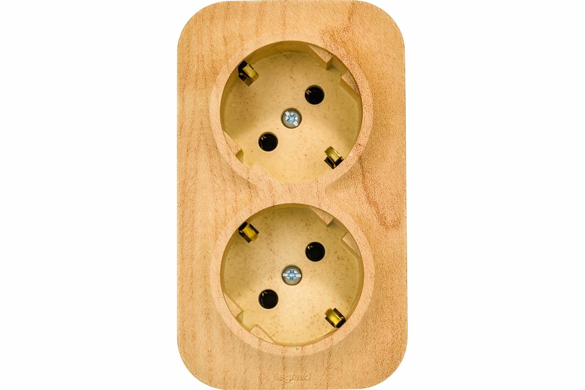 Розетка 782293 двойная открытая установка дерево с заземлением