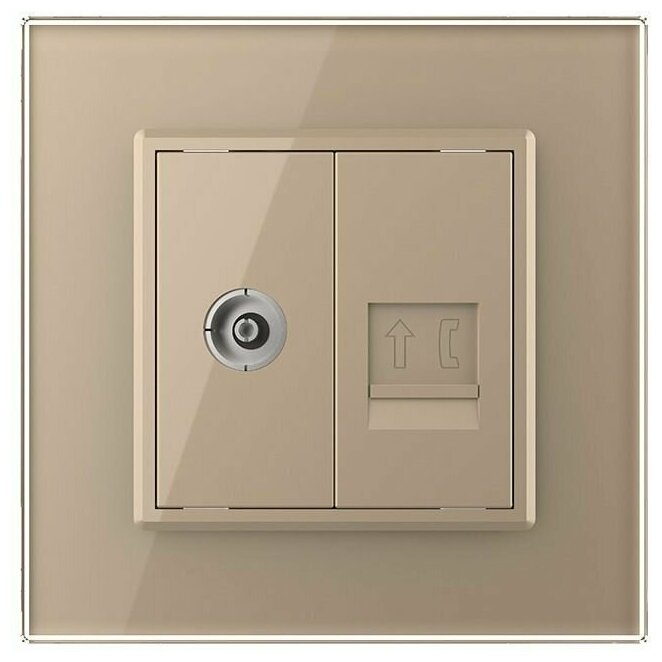 Розетка Livolo, телевизор и телефон, разъемы антенный и RJ-11, стеклянная рамка