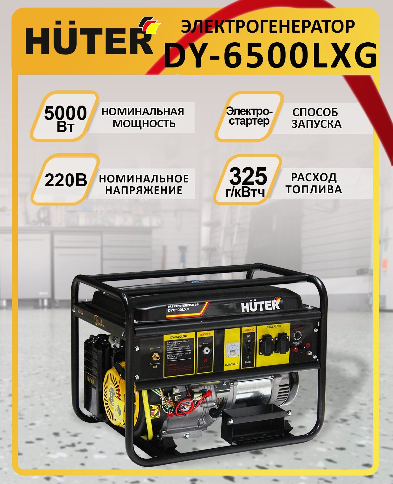 Гибридный генератор Huter DY6500LXG, 220 В, 5кВт [64/1/32]