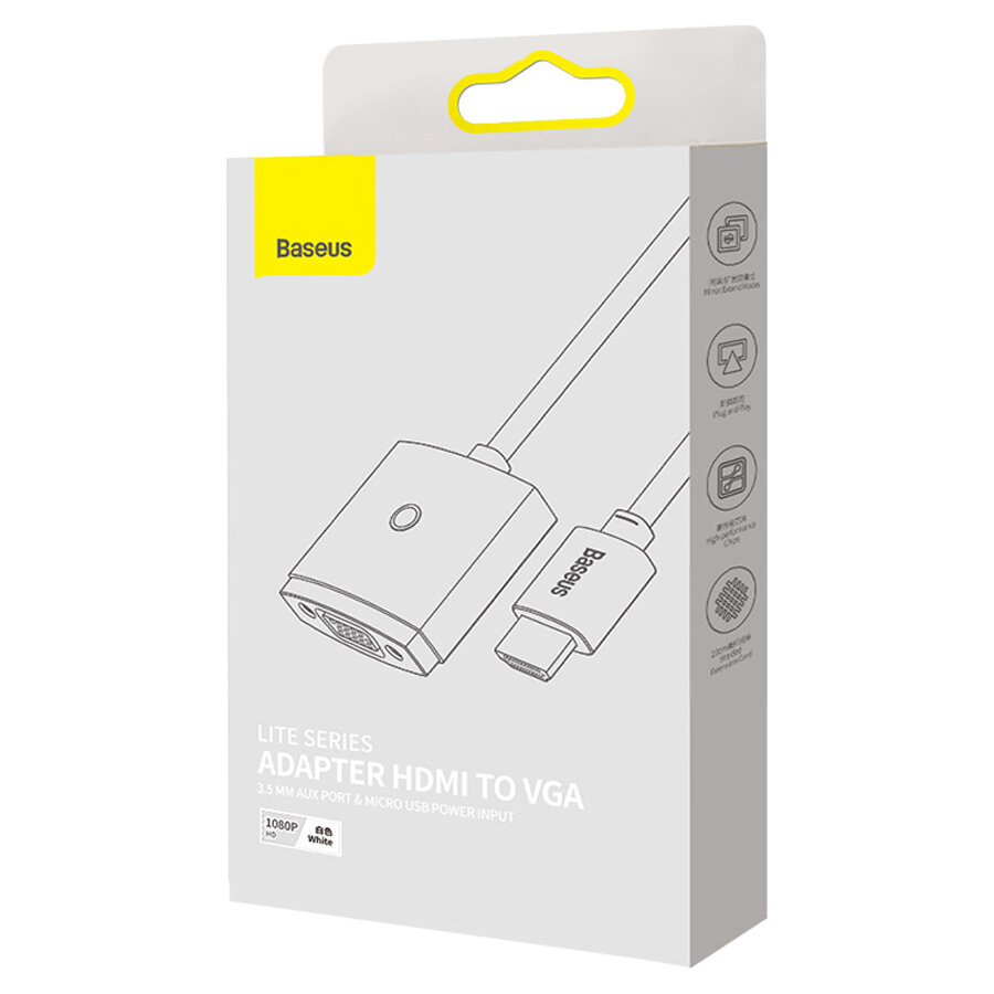 Купить Адаптер-переходник Baseus Lite Series Adapter HDMI to VGA (3.5 mm Aux Port & Micro USB Power Input) White (WKQX010102)