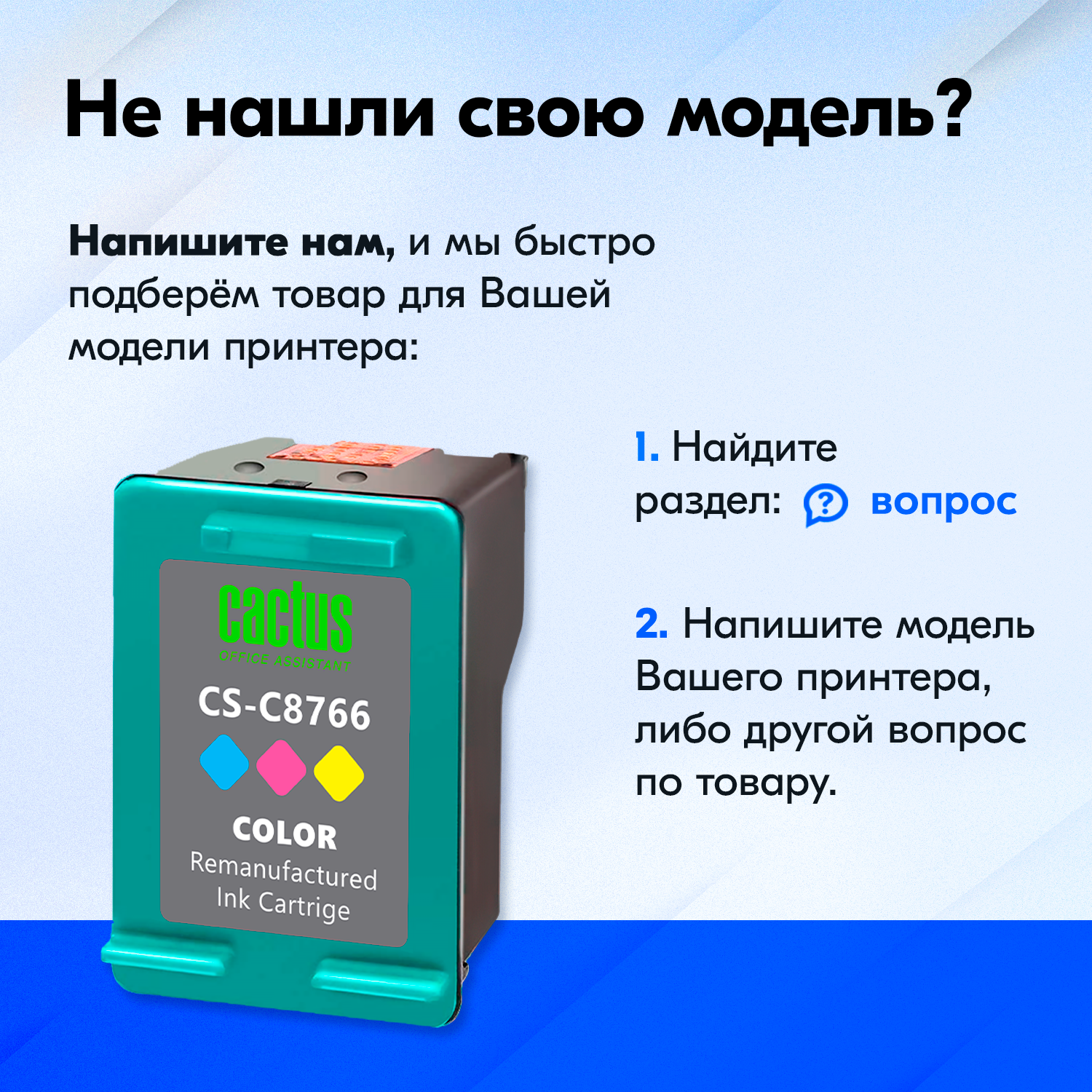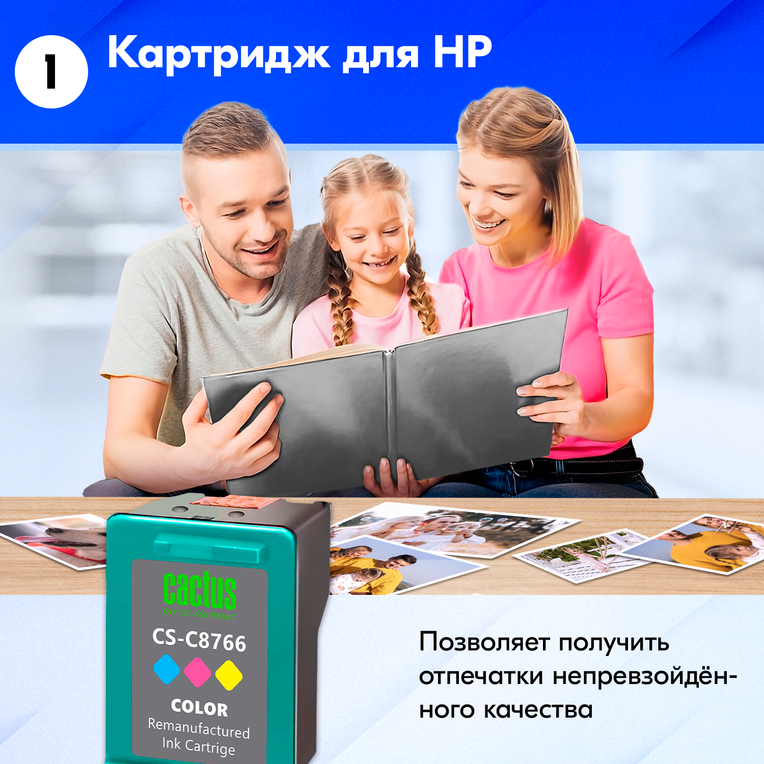 Картридж Cactus CS-C8766, совместимый, цветной, 800 страниц, для DJ 5940 / 460 / 5743 / 6543 / 6843 / 6943, OJ 4212 / 6213 / 6313 / 7213 / 7310 / 7410 / 100 / 150, PSC 2355 / 2353 / 2410, 2573 / 2613 / 425 / 428 / 325 / 335 / 375 / 385 / 475