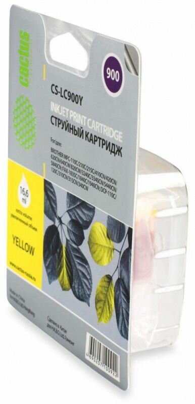 Картридж Cactus CS-LC900Y совместимый струйный картридж (Brother LC-900Y) 16,6 мл, желтый