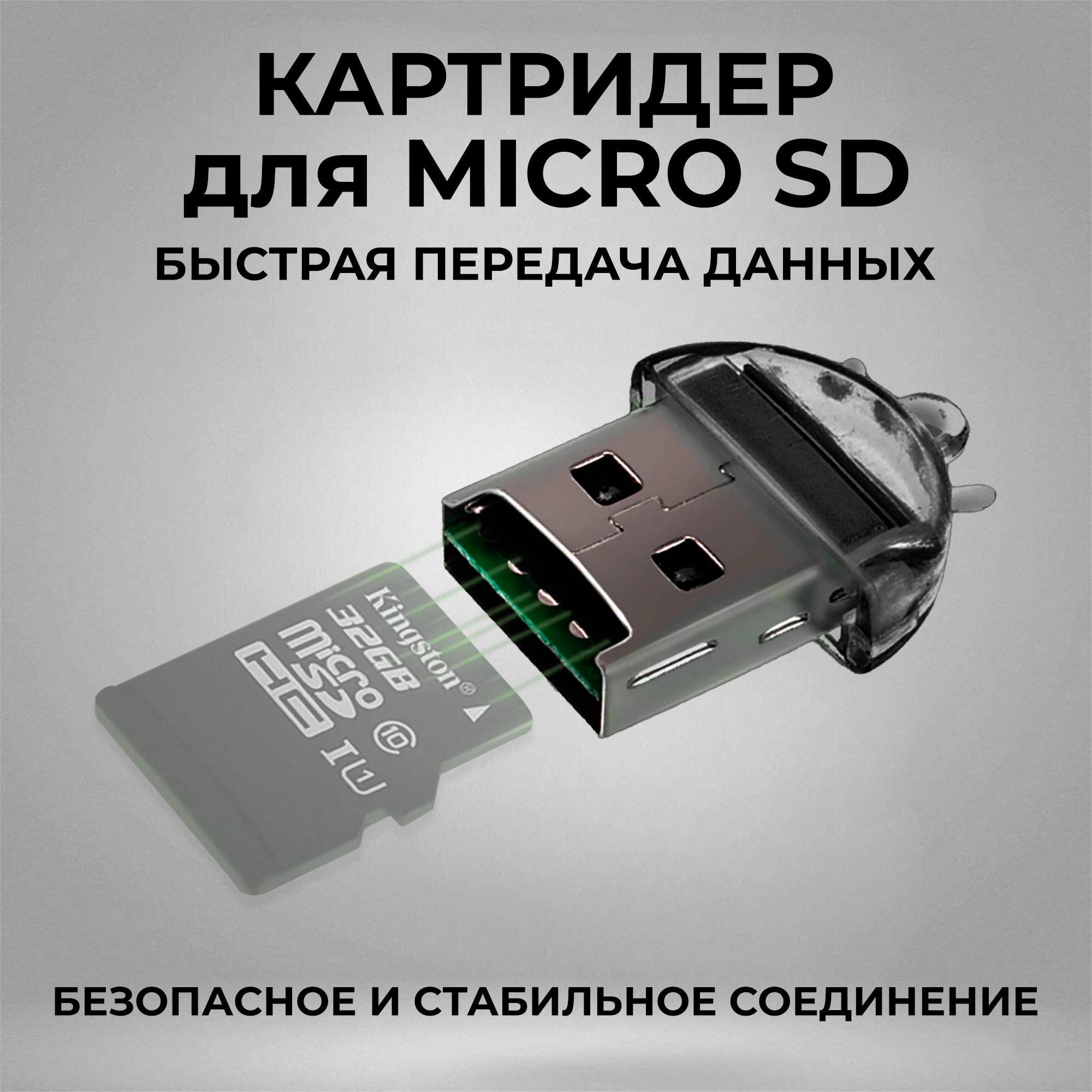 Картридер microSD, WALKER, CD-25, черный / адаптер для ноутбуков, переходник для компьютеров микро сд, для USB-порта, карт ридер, кард-ридер