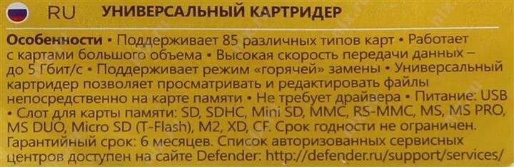 Ниже Вы можете прочитать отзывы на Устройство чтения USB 2.0 Defender OPTIMUS, черный (M2, Compact Flash, Micro-SDHC, Micro-SD,MMC, MS, MS Duo, MS PRO, MS PRO Duo,SD, SDHC) (8\83501), ознакомится с подробными характеристиками, посмотреть интересные обзоры и фотографии на Устройство чтения USB 2.0 Defender OPTIMUS, черный (M2, Compact Flash, Micro-SDHC, Micro-SD,MMC, MS, MS Duo, MS PRO, MS PRO Duo,SD, SDHC) (8\83501).