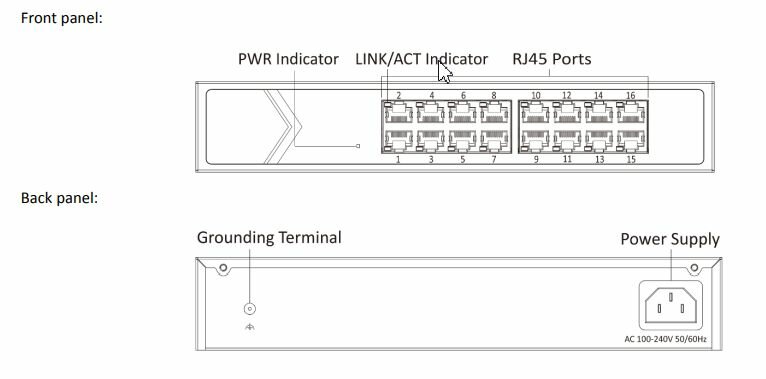 DS-3E0516-E(B) 16 Gigabit RJ45 ports, 19-inch Rack-mountable Steel Case Unmanaged Switch