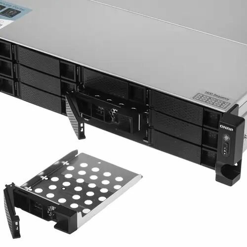 Сетевое хранилище данных QNAP SMB QNAP TS-1273AU-RP-8G NAS 12 HDD trays, 2x 2.5 GbE, rackmount, 2 PSU. 4-core AMD V1500B 2,2 GHz , RAM 8 GB (8 GB UDIMM DDR4 (1 x 8 GB) up to 32 GB (2 x 16 GB)). W/o rail kit RAIL-B02