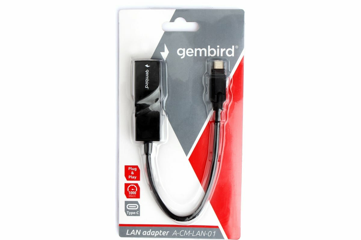 Сетевая карта Gembird 1xRJ-45, 1 Гбит/с, USB 3.0 Type C (A-CM-LAN-01)
