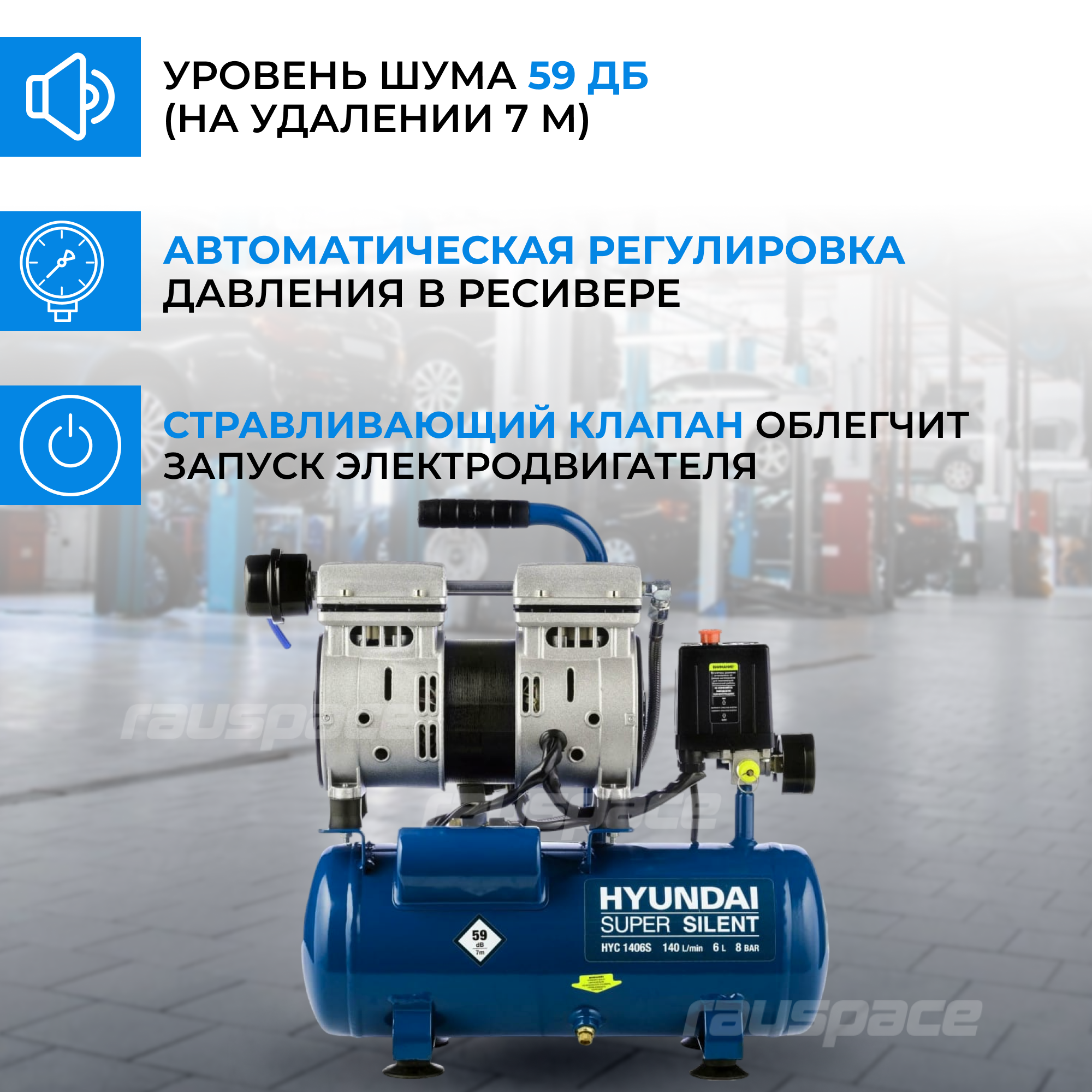 Компрессор безмасляный HYUNDAI HYC 1406S поршневой, бесшумный.
