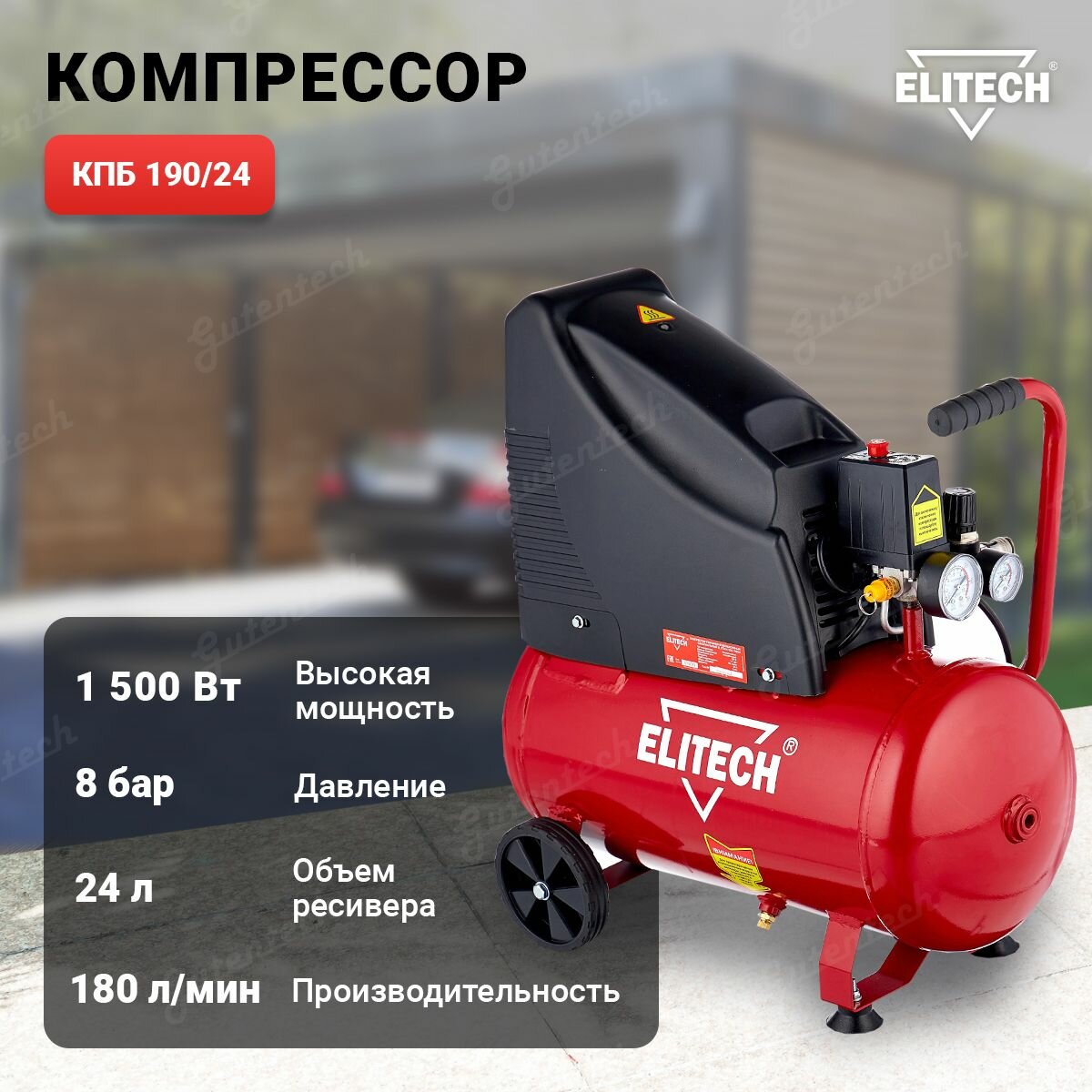 Компрессор безмасляный ELITECH КПБ 190/24, 24 л, 1.5 кВт