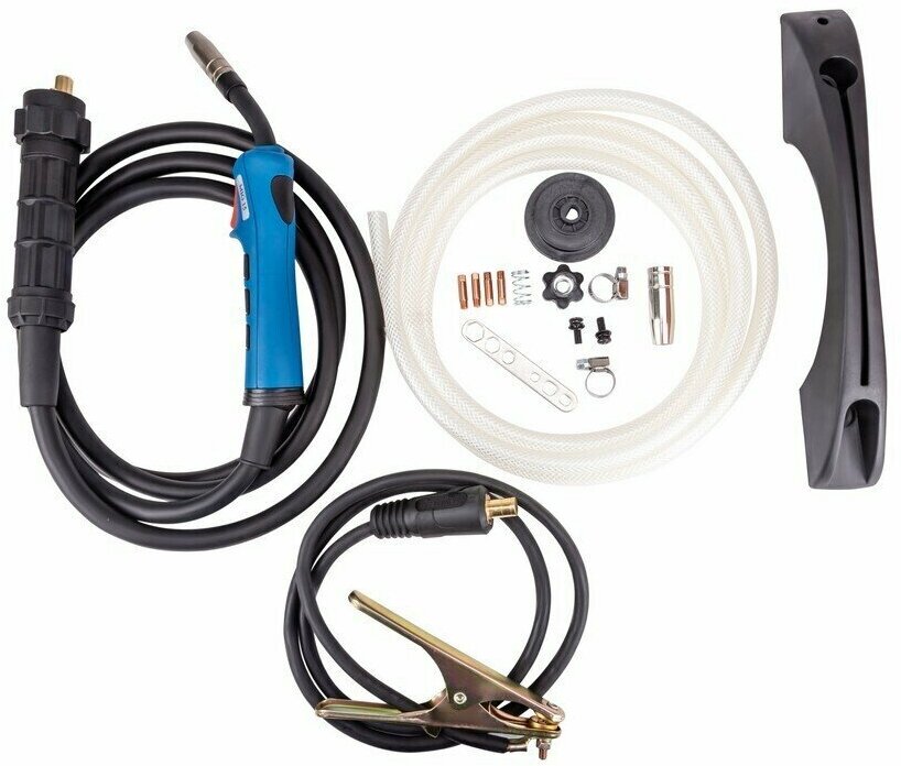 | Комплектация | - инвертор; - горелка MIG-15 (3 м); - зажим для заземления с кабелем 1.5 м; - рукав газовый (3 м); - комплект ЗИП (сопло Ø 12 мм; наконечники Ø 0.8 — 2 шт, Ø 1.0 — 2 шт; хомуты — 2 шт; болты для крепления ручки; ключ; ручка; ролики 0.8/1.0 мм). |