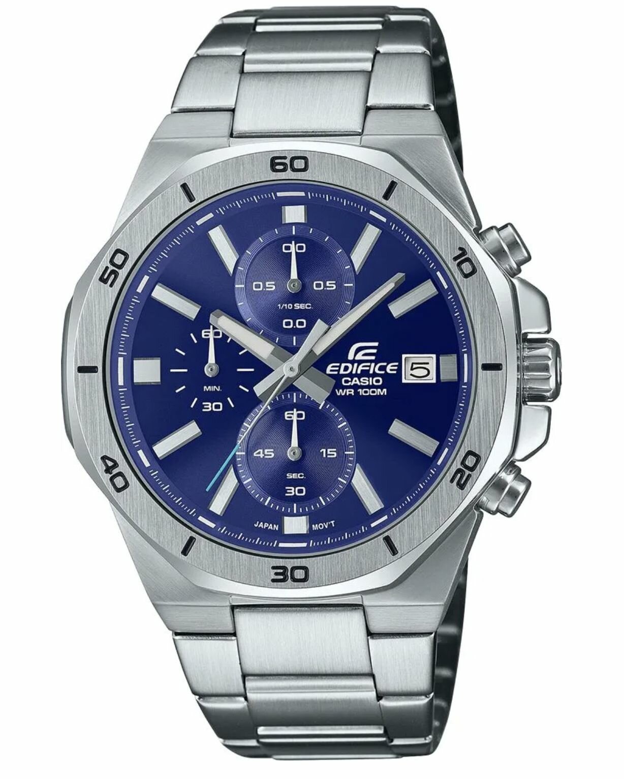 EFR-571DC-2A Casio наручные часы кварцевые WR100 (10 атм) мужские черный, синий отображение числа подсветка стрелок минеральное стекло