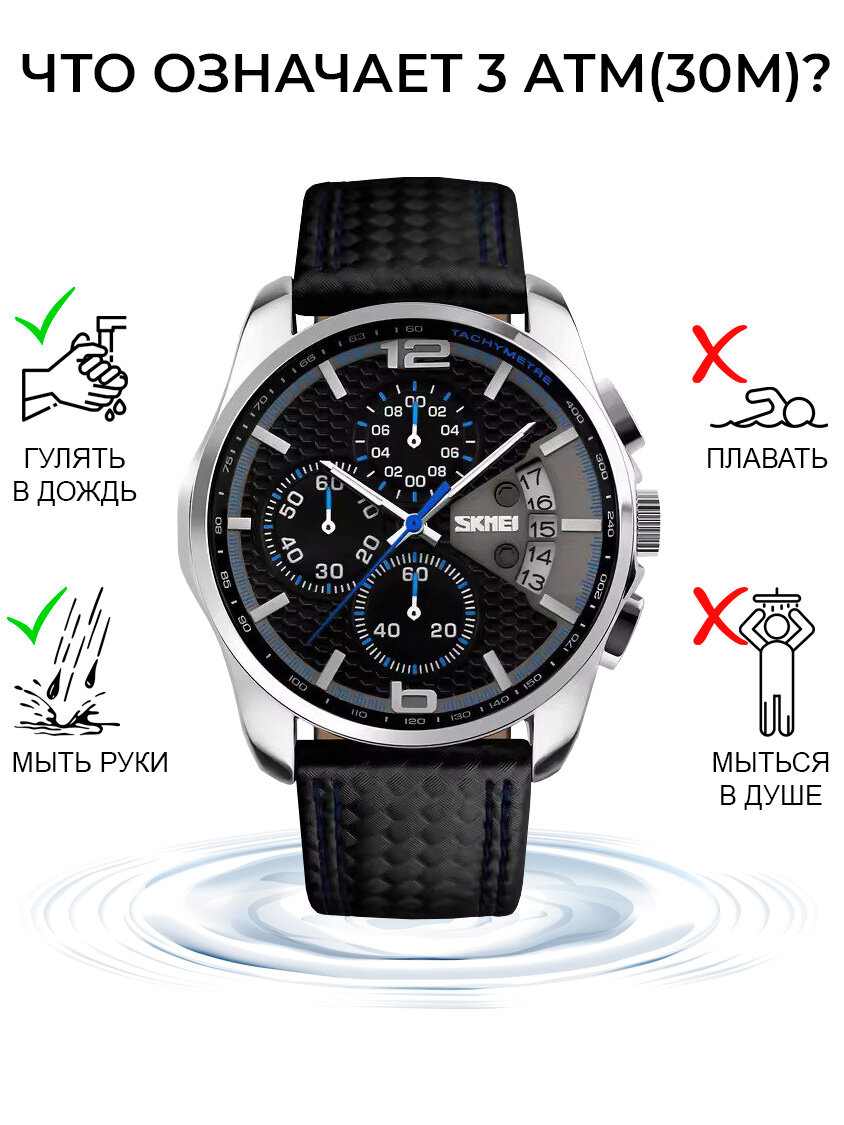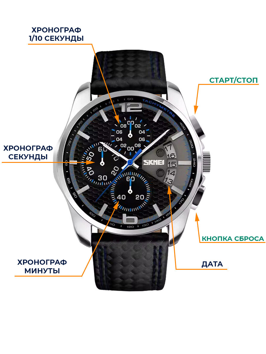 Часы наручные мужские SKMEI кварцевые, круглые, с секундомером, синие интересное: