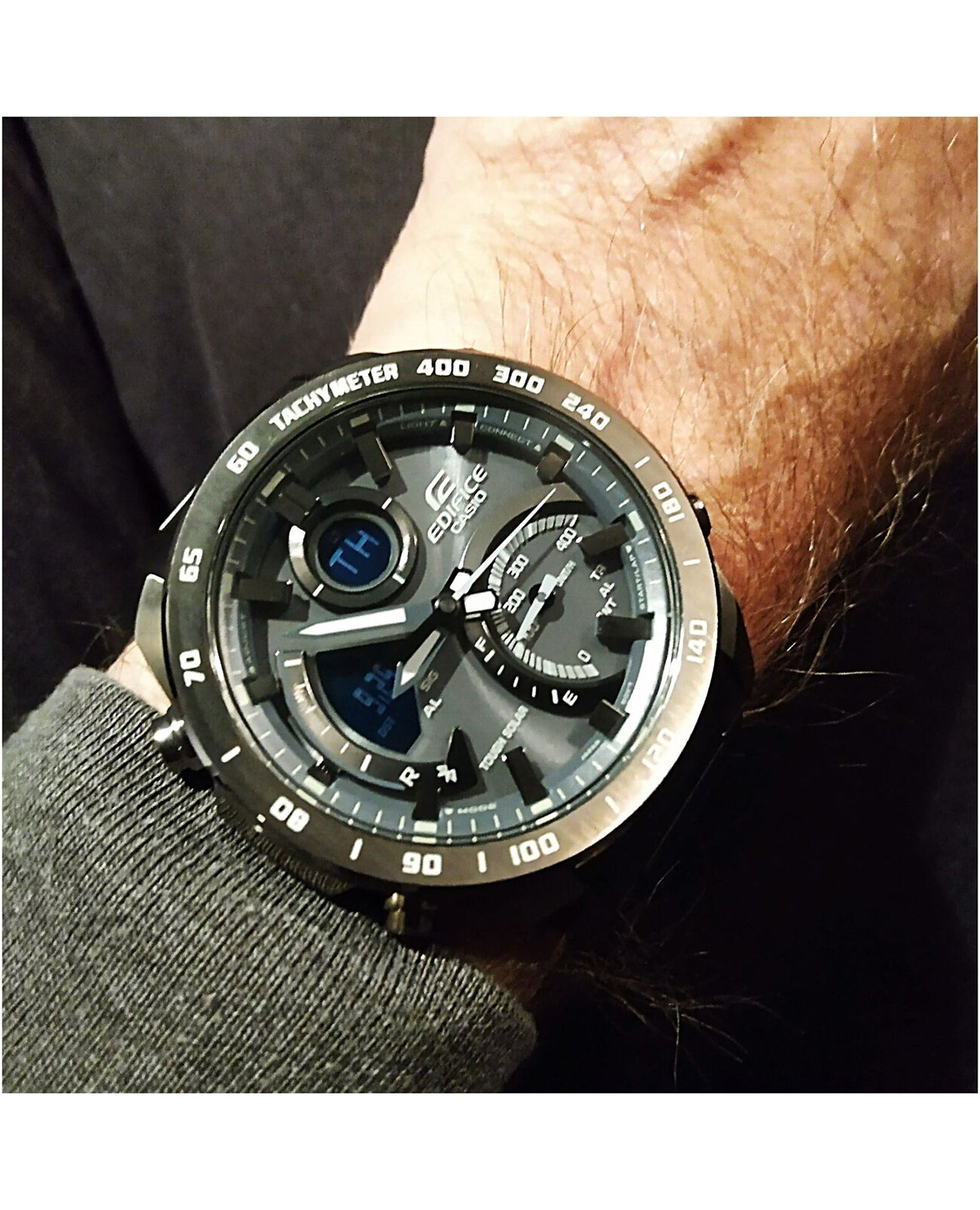 | Плюсы: | Корректировка времени по блутуз, это для меня самое главное. Водонепроницаемость 10 бар, свободно плавать можно, солнечная батарея, на десять лет считай забыл про замену батарейки. Подсветка!!! не просто тусклое свечение где-то в углу, а реально прожектор, видно отлично и стрелки и цифровой экран) Русифицированные дни недели, мелочь а приятно. Все манипуляции по настройке часов можно делать через приложение в смартфоне. Конечно же размер, солидно смотрятся, хотя не каждой руке подойдут. Коллеги заметили))) |