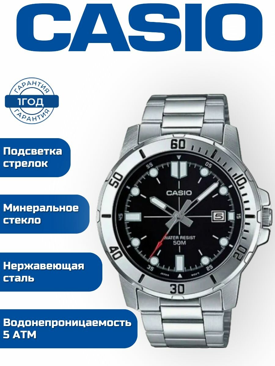 Наручные часы CASIO Collection MTP-VD01D-1E, серебряный, черный интересное: