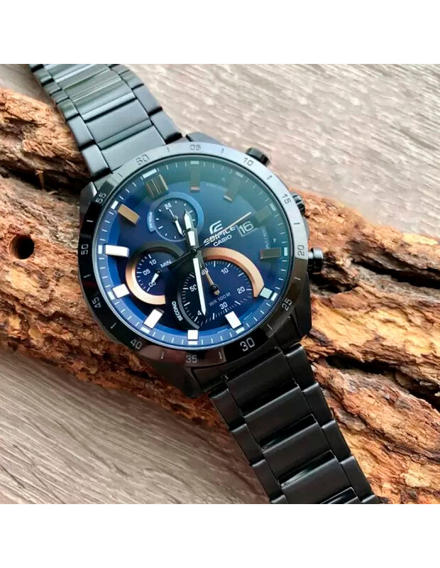 EFR-571DC-2A Casio наручные часы кварцевые WR100 (10 атм) мужские черный, синий отображение числа подсветка стрелок минеральное стекло
