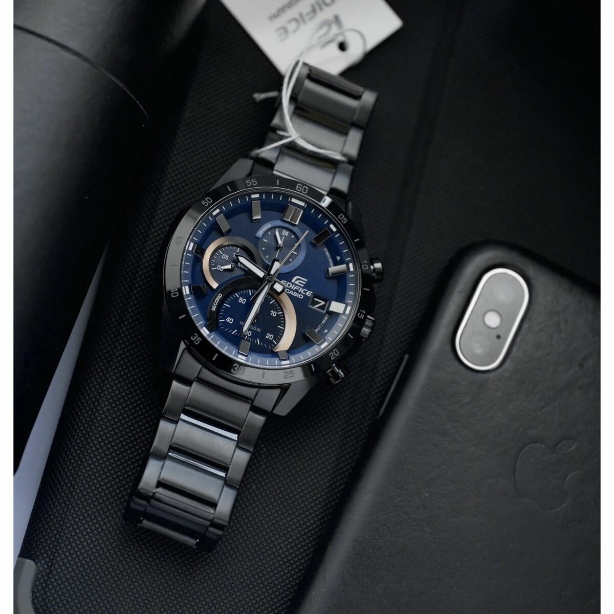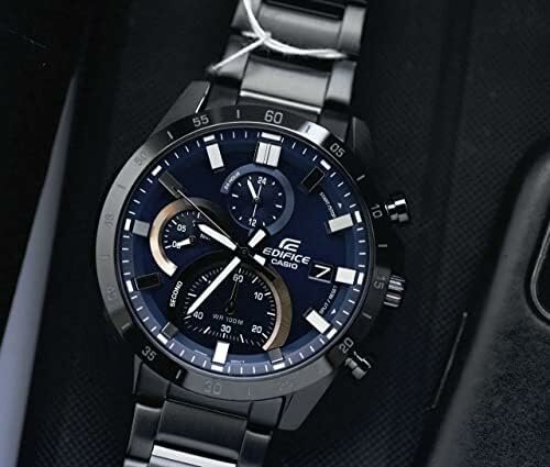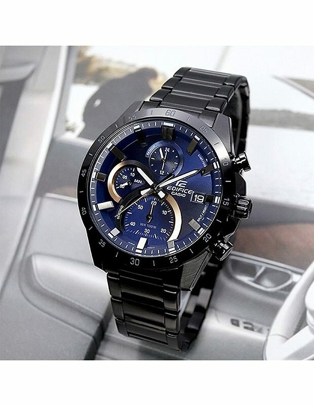 EFR-571DC-2A Casio наручные часы кварцевые WR100 (10 атм) мужские черный, синий отображение числа подсветка стрелок минеральное стекло