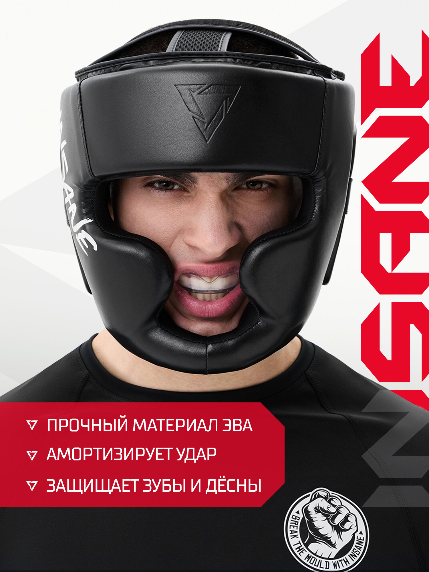 Капа Insane 1-челюстная Jaguar, эва, черный/белый, взрослый