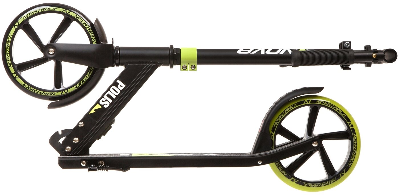 СохранитьСамокат городской NOVATRACK POLIS PRO алюминий, складной с помощью кнопки на раме, колеса PU 200*200мм, лимонный интересное: