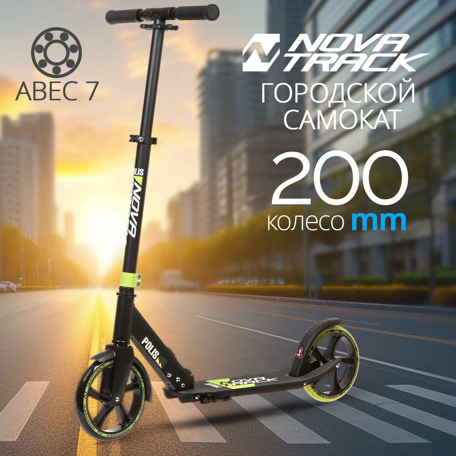 Купить Самокат городской NOVATRACK POLIS PRO алюминий, складной с помощью кнопки на раме, колеса PU 200*200мм, лимонный