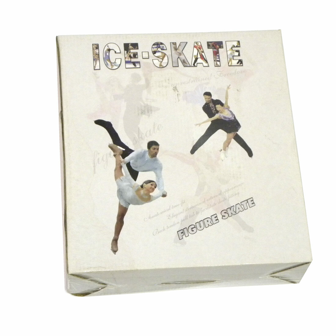 Коробка клеянная, переклеянная, еле держится. На самих коньках пятна, потёртости... Сами коньки жёсткие. |