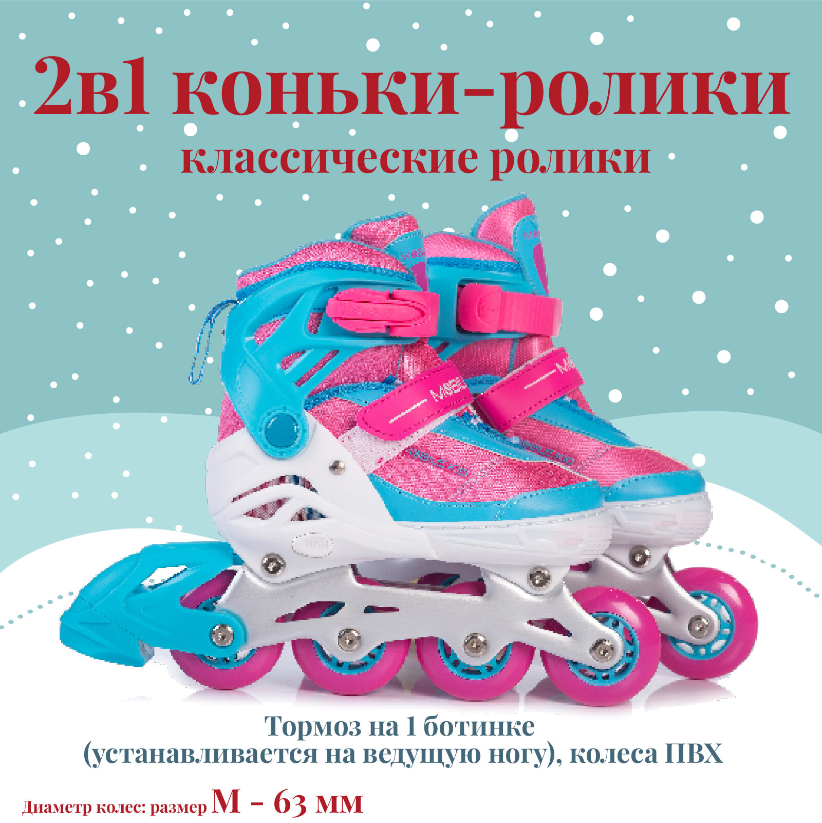 Раздвижные коньки-ролики MOBILE KID Uni Skate (2 в 1), размер M (CYAN PINK)