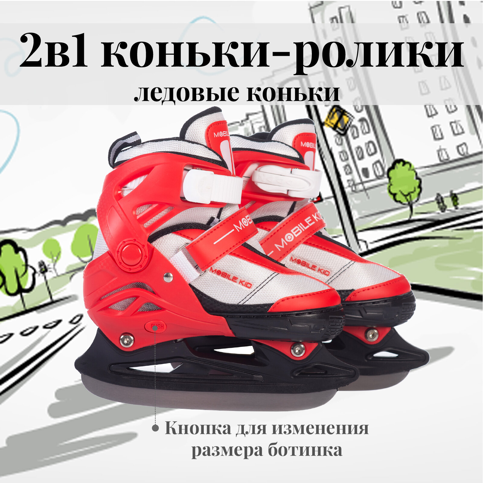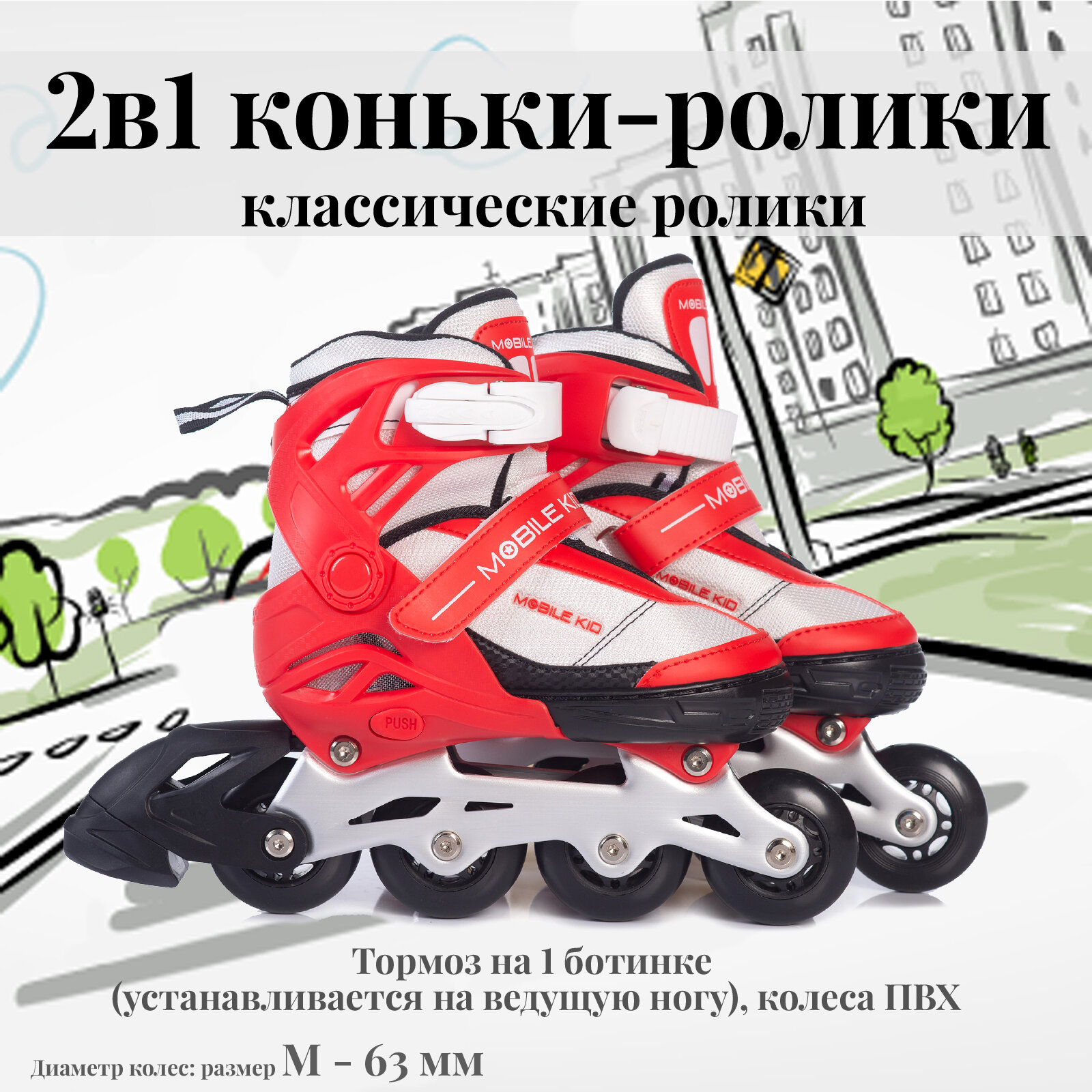 Купить Роликовые коньки раздвижные Mobile Kid Uni Skate (2 в 1), размер M (RED WHITE)