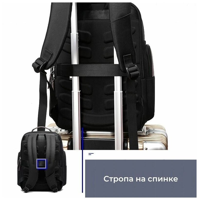 Рюкзак мужской городской дорожный 28л для ноутбука 15.6 Bopai Business 751-007301 Черный с USB зарядкой