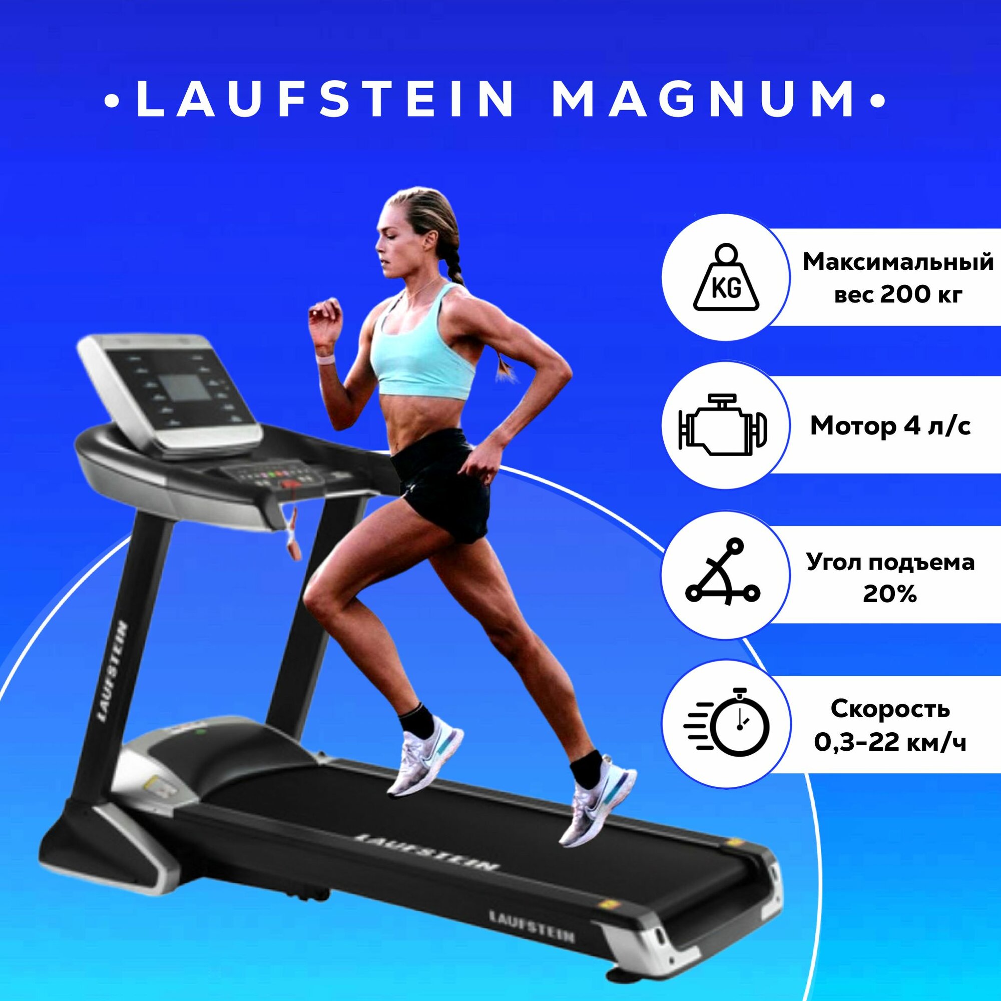 Ниже Вы можете прочитать отзывы на Беговая дорожка LAUFSTEIN MAGNUM электрическая, для дома, складная, ознакомится с подробными характеристиками, посмотреть интересные обзоры и фотографии на Беговая дорожка LAUFSTEIN MAGNUM электрическая, для дома, складная.