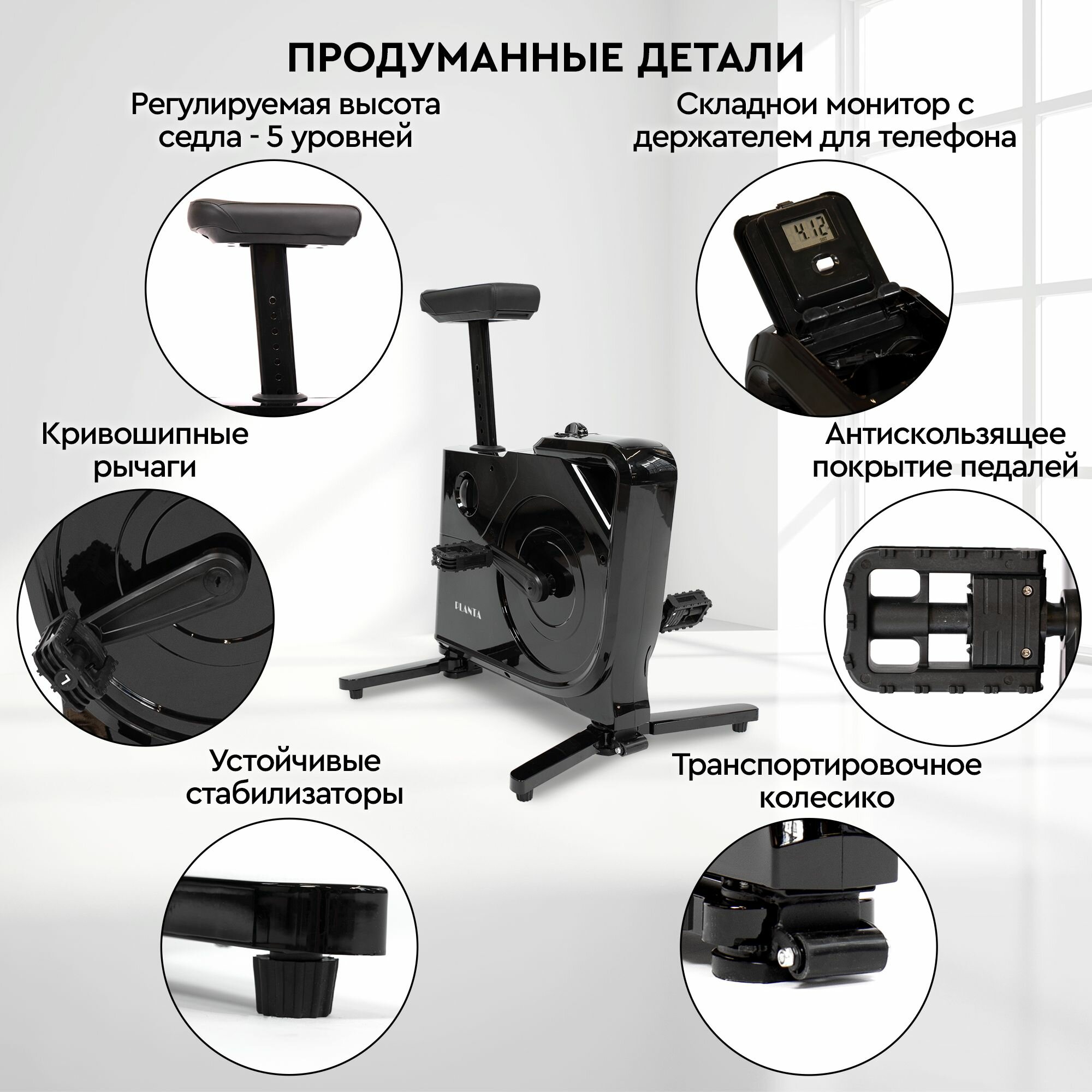 PLANTA Складной велотренажер для дома FD-BIKE-005, тренажер для похудения, мини велотренажер