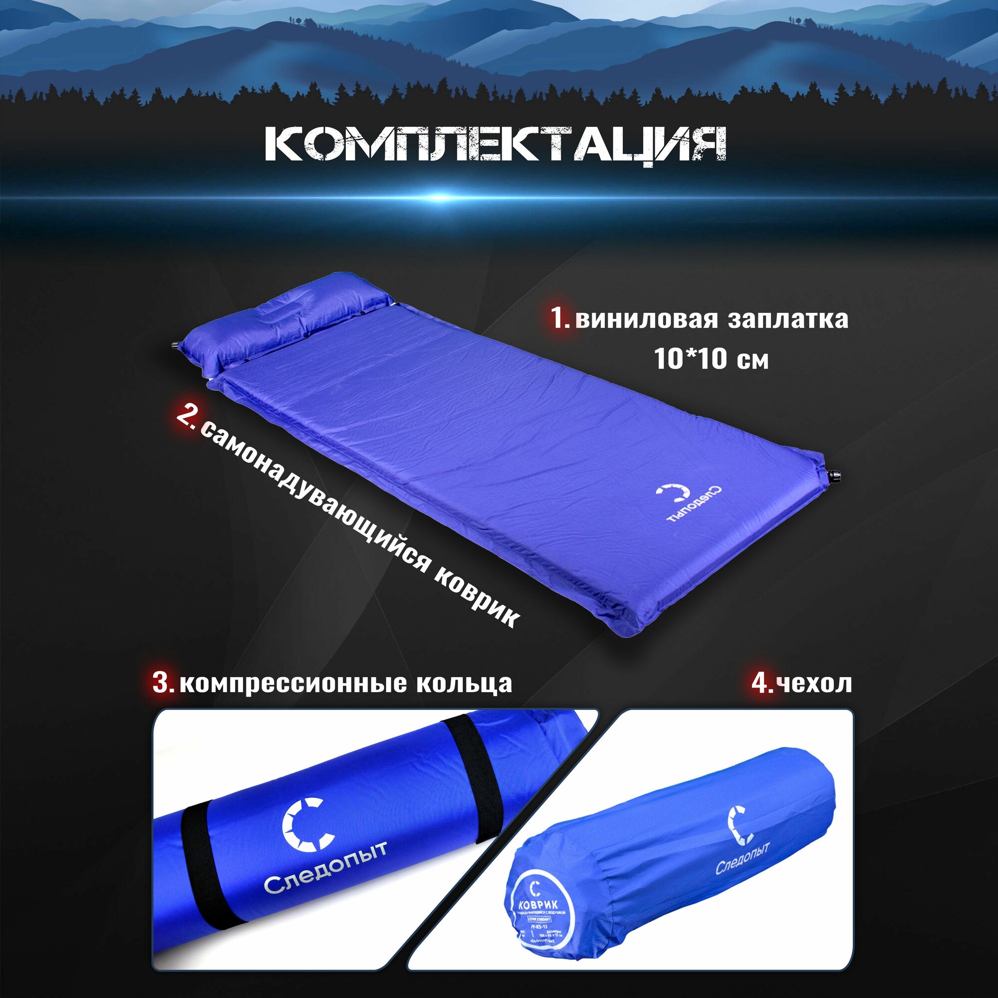 Коврик самонадувающийся с подушкой следопыт, 188x65x5 cм, стандарт, синий