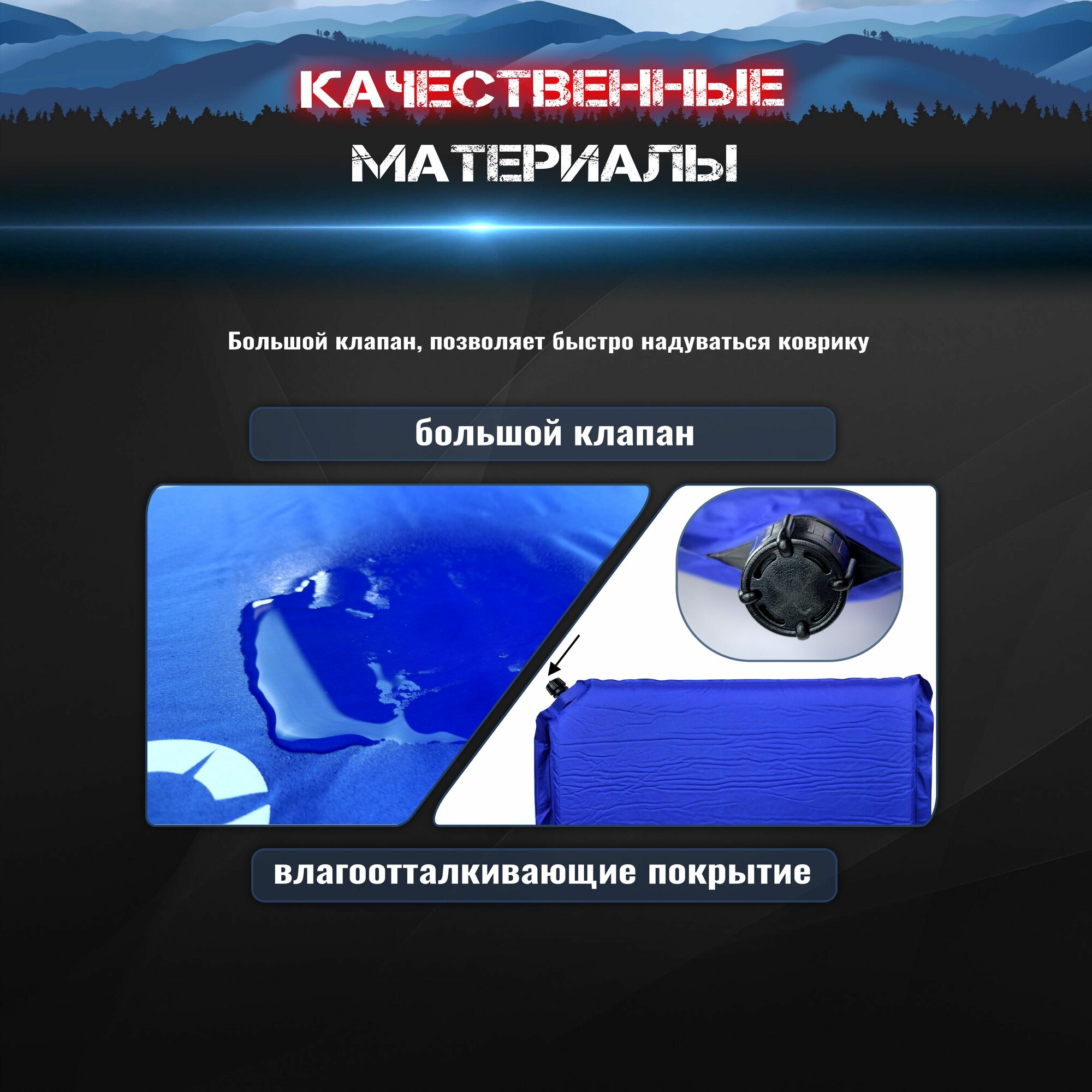 Коврик самонадувающийся туристический 5 см толщина "следопыт" 188x66x5 cм, стандарт/ Походный матрас кемпинговый/ Коврик в палатку самонадувной