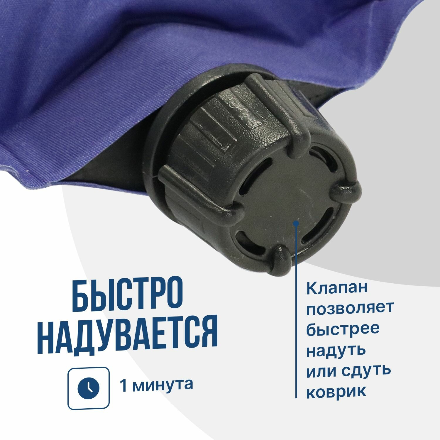 Коврик самонадувающийся Следопыт 188x65x5 cм стандарт с подушкой , синий