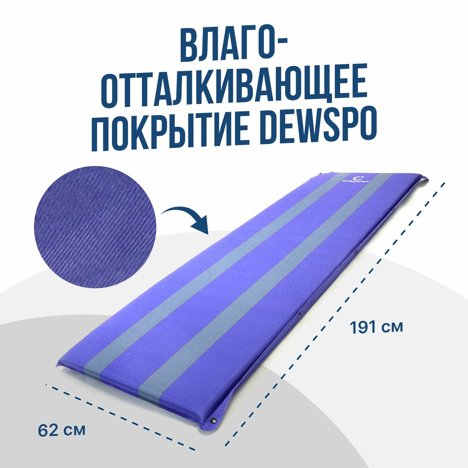 Коврик самонадувающийся "следопыт" 191x62x5 cм, стандарт, цв. синий/серый/10/PF-KS-05