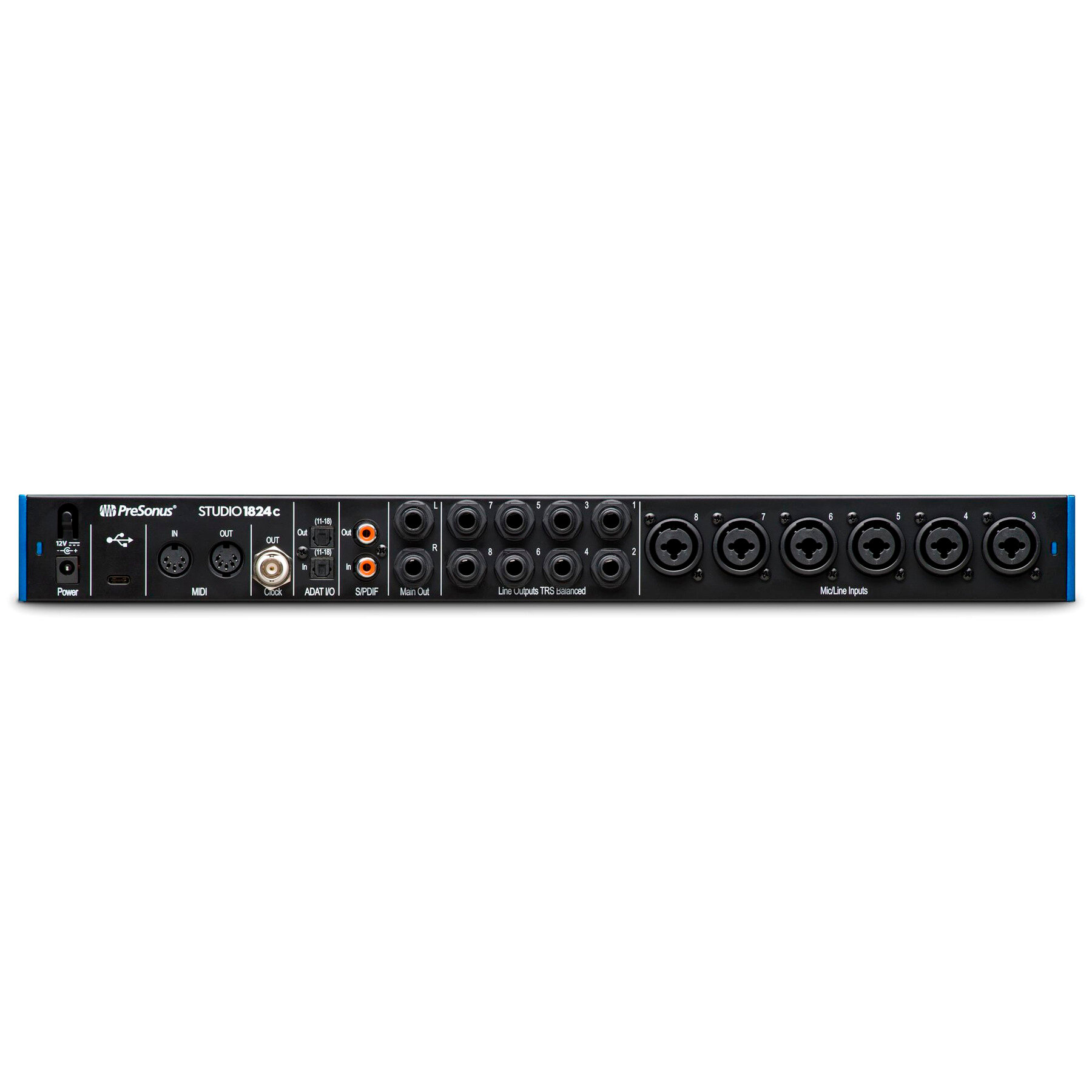 PreSonus Studio 1824C аудио/MIDI интерфейс, USB-C 2.0, 18вх/18 вых каналов, предусилители XMAX, до 24 бита/192кГц, MIDI I/O, S/PDIF I/O, ADAT I/O, Clock Out, 2 выхода на наушники, ПО StudioLive, Artist