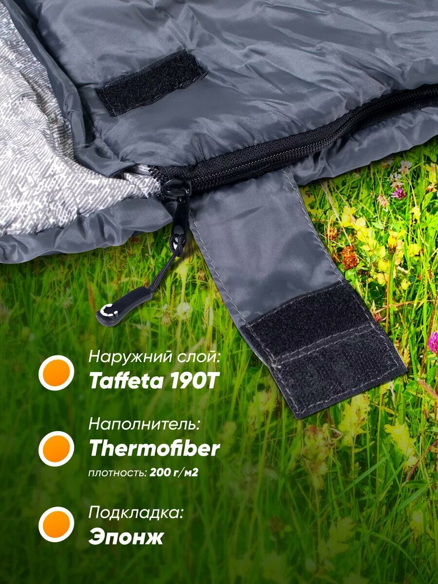 Спальный мешок туристический с подголовником "следопыт- Traveller XL", 190+35х85 см, до 0С, 3х слойн,цв.т-серый / Спальник туристический / Одеяло туристическое