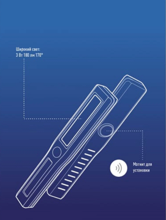 Фонарь 3Вт COB LED крючок магнит питание 3хAAA, космос KOCAU6001COB (1 шт.)