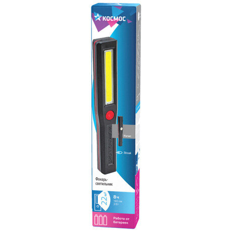 Космос Фонарь 3Вт COB LED крючок магнит питание 3хAAA космос KocAu6001COB