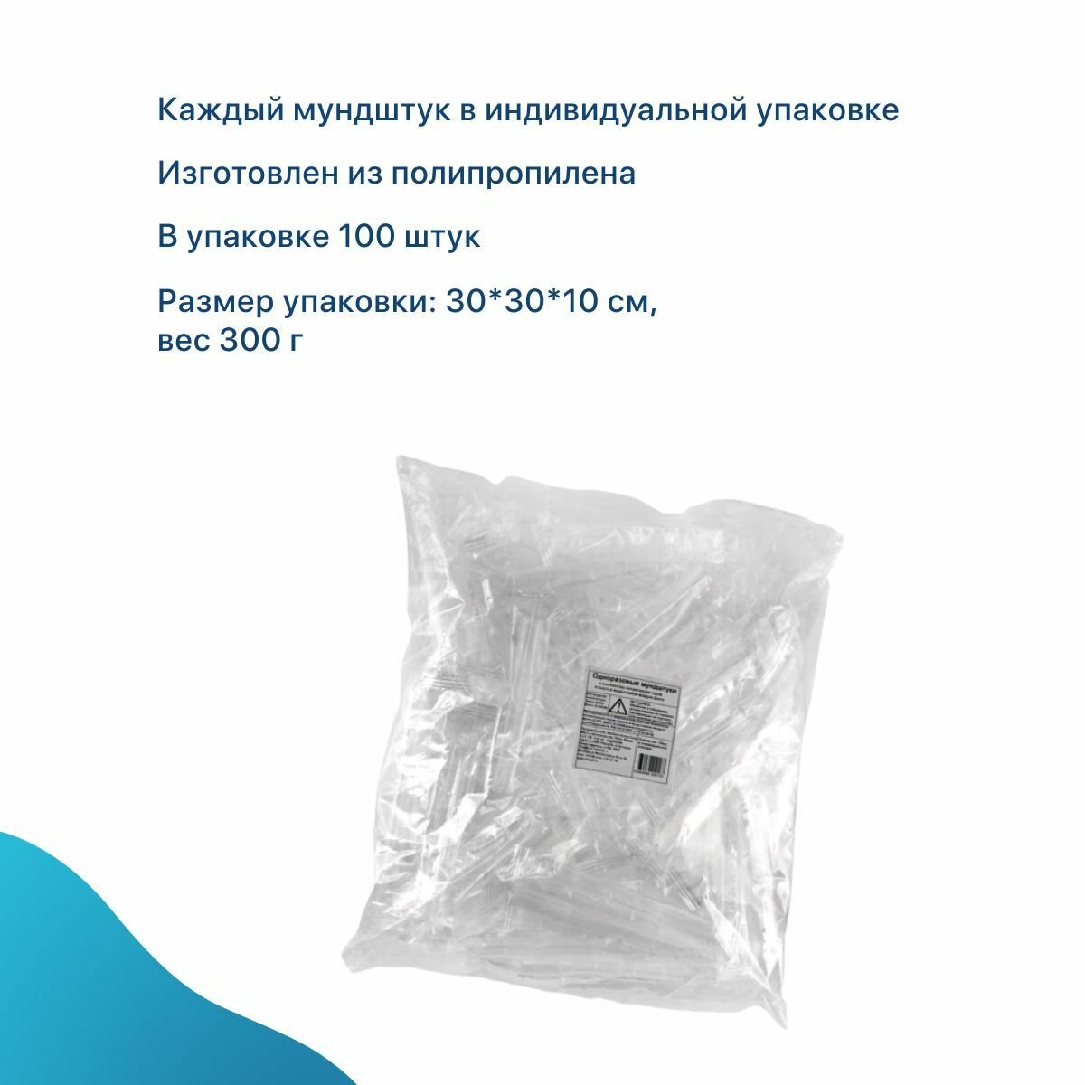 Мундштук для алкотестера, одноразовый, пластиковый, 100 шт