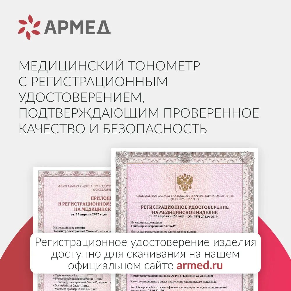 Тонометр (МЕД РУ без НДС) АРМЕД YE660E, диапазон давления 0-280 мм рт. ст., диапазон пульса 40-200 уд/мин, автоматический, без поверки, 1977801