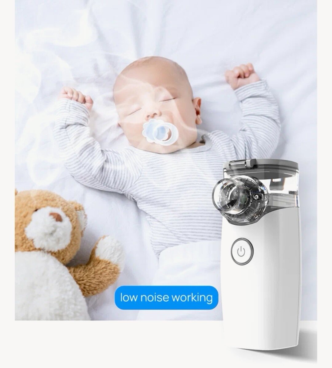 | Плюсы: | Заказали этот небулайзер, так как старый очень тяжелый и шумный, ребенок без всякого желания раньше дышал. С этим можно и мультики смотреть , он легко в одной руке умещается, заряжается от USB легко и просто. Нет инструкции на русском, но она и не нужна. Кнопку нажал, кнопку отпустил и все дела. |