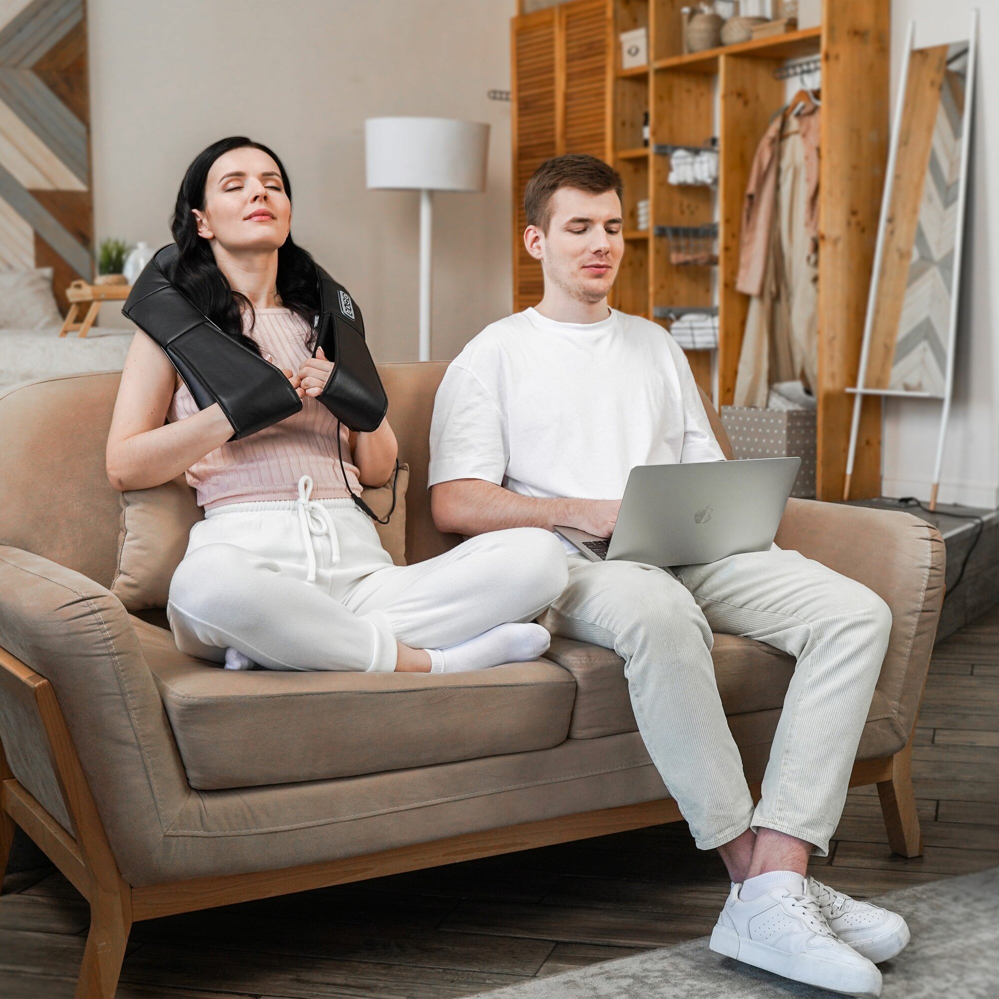 Очень достойный массажер. Материал очень качественный (ожидали, что будет хуже, если честно). Подогрев работает отлично, действительно подогревает, а не светит. Провод довольно длинный, хотя, конечно, в идеале бы обойтись без него (не знаю, есть ли такие массажеры в принципе). Массаж огонь (не в смысле подогрева) - очень хорошо снимает напряжение в шее и плечах, особенно после сидячего рабочего дня.