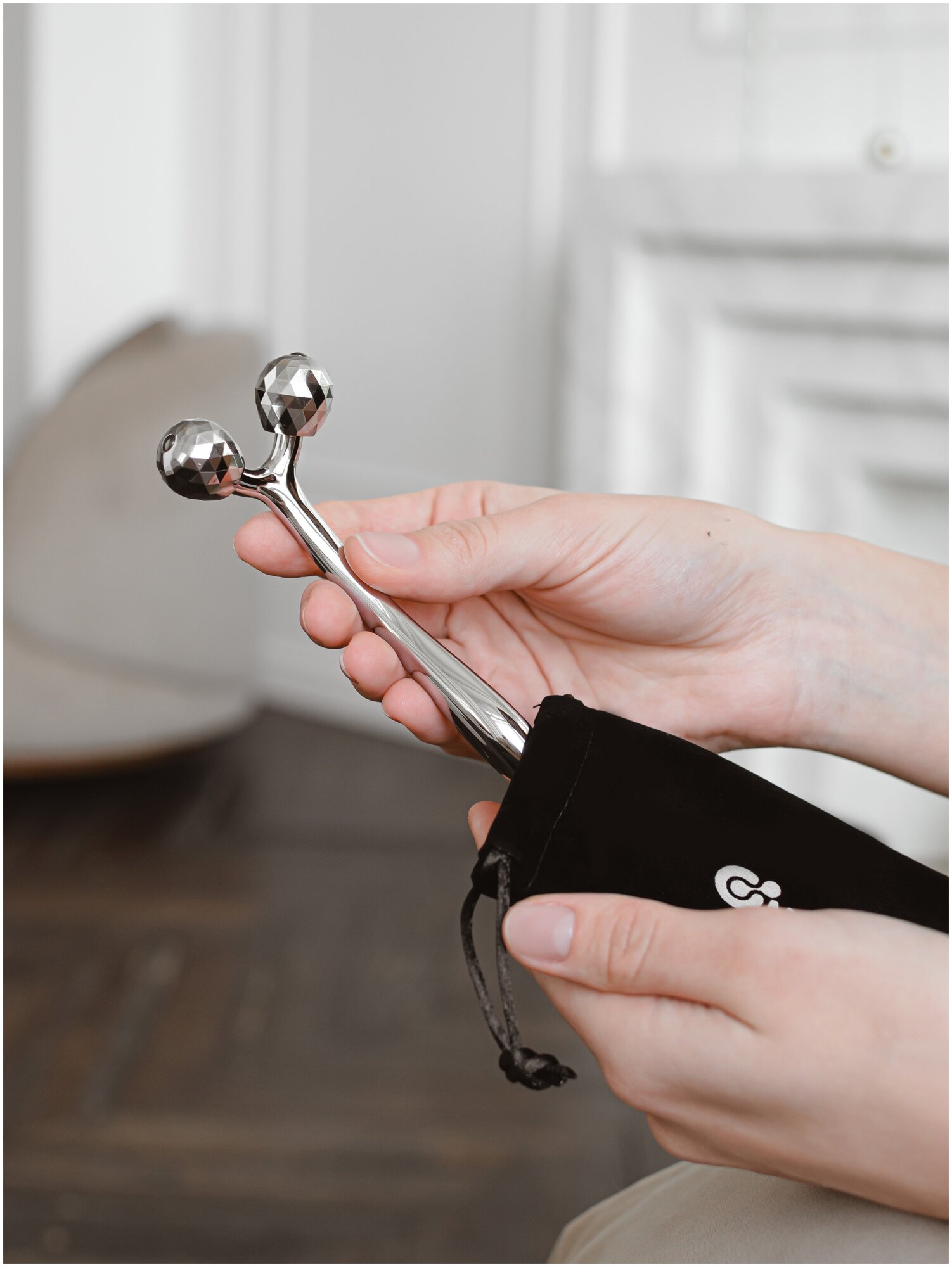 Массажер 2 в 1 роликовый Mezonica, скребок гуаша металлический, для массажа лица, кожи вокруг глаз, декольте