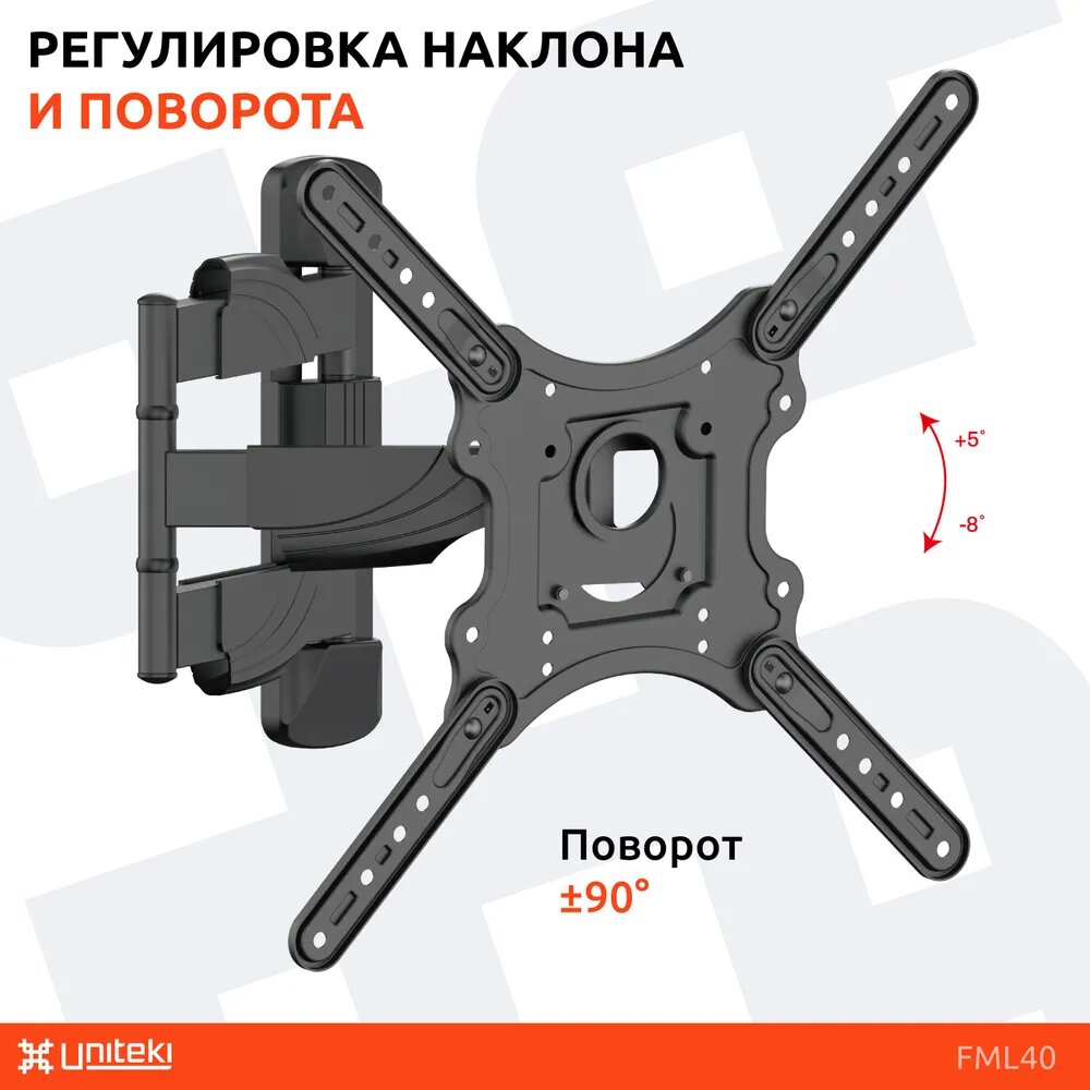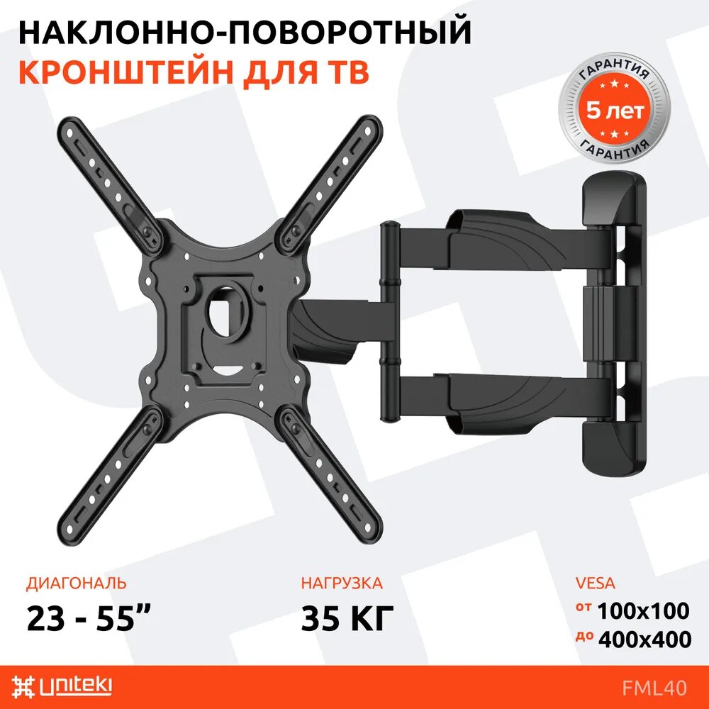 Кронштейн для телевизора на стену наклонно-поворотный с диагональю 23"-55" UniTeki FML40,черный