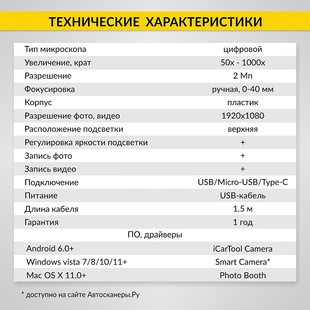 Микроскоп цифровой USB/Micro-USB/Type-C, 2Мп, 1000X, 1920x1080, 1.5м iCartool IC-V317 интересное: