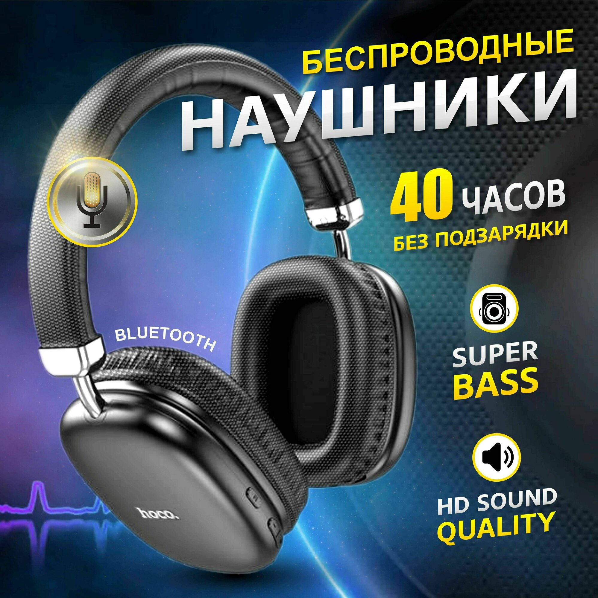 Наушники беспроводные большие hoco W35 Black / Игровые беспроводные накладные блютуз с микрофоном хоко / Гарнитуры без проводные для ПК, компьютера, телефона, плеера