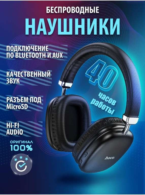 Наушники накладные hoco w35 беспроводные bluetooth (блютуз) хоко черный