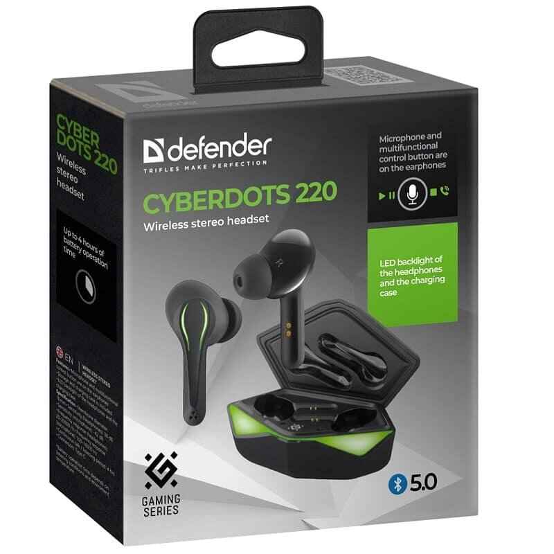 Беспроводная игровая гарнитура Defender CyberDots 220 черный, Tws, Bluetooth CyberDots 220 .