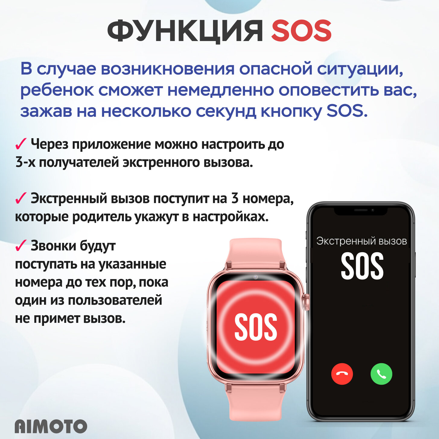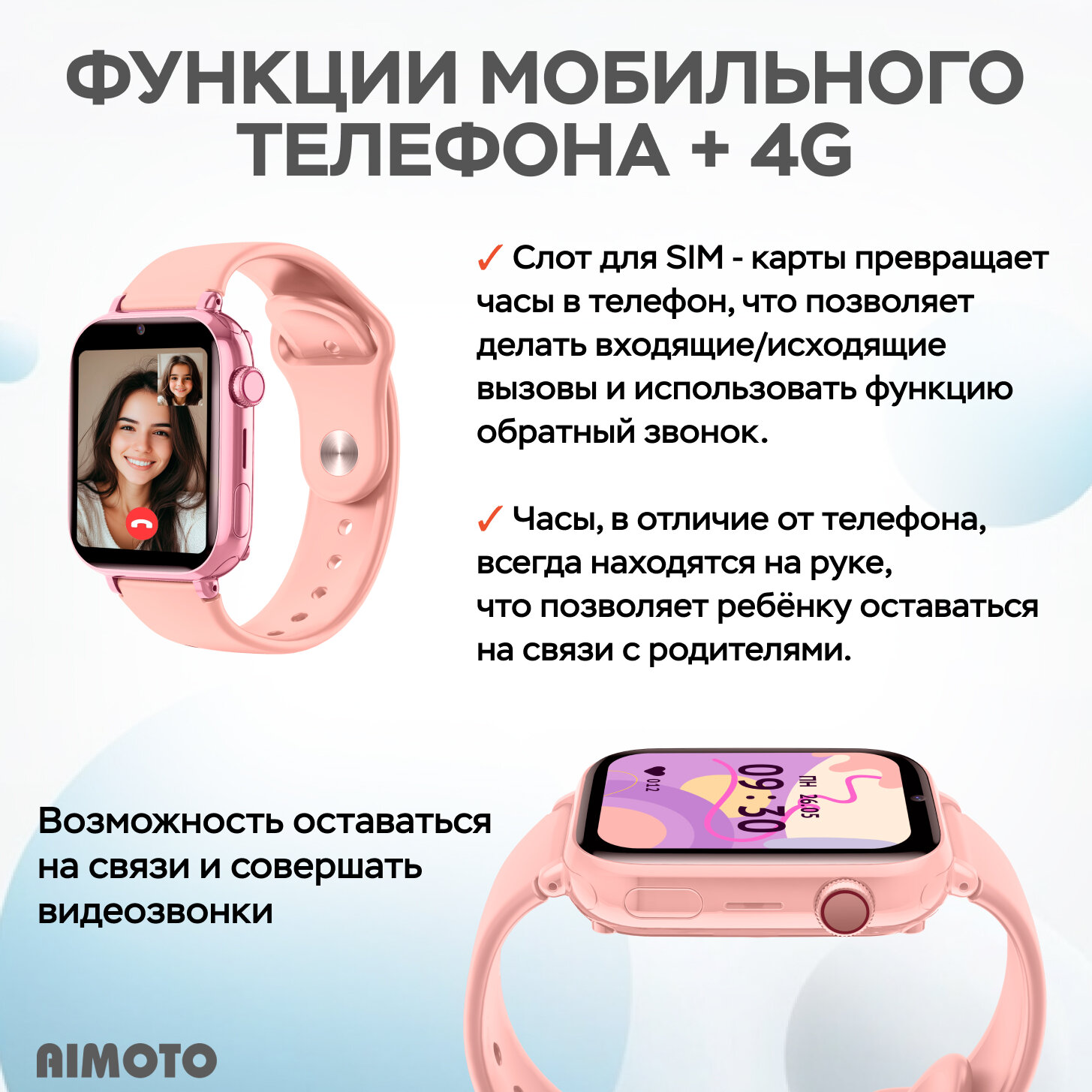 Смарт часы для детей 4G с GPS геолокацией, Aimoto Concept с видеозвонками, звонками, мощная батарея 670 мАч, смарт часы детские 4G с прослушкой, часы детские наручные для мальчиков и девочек, Розовый