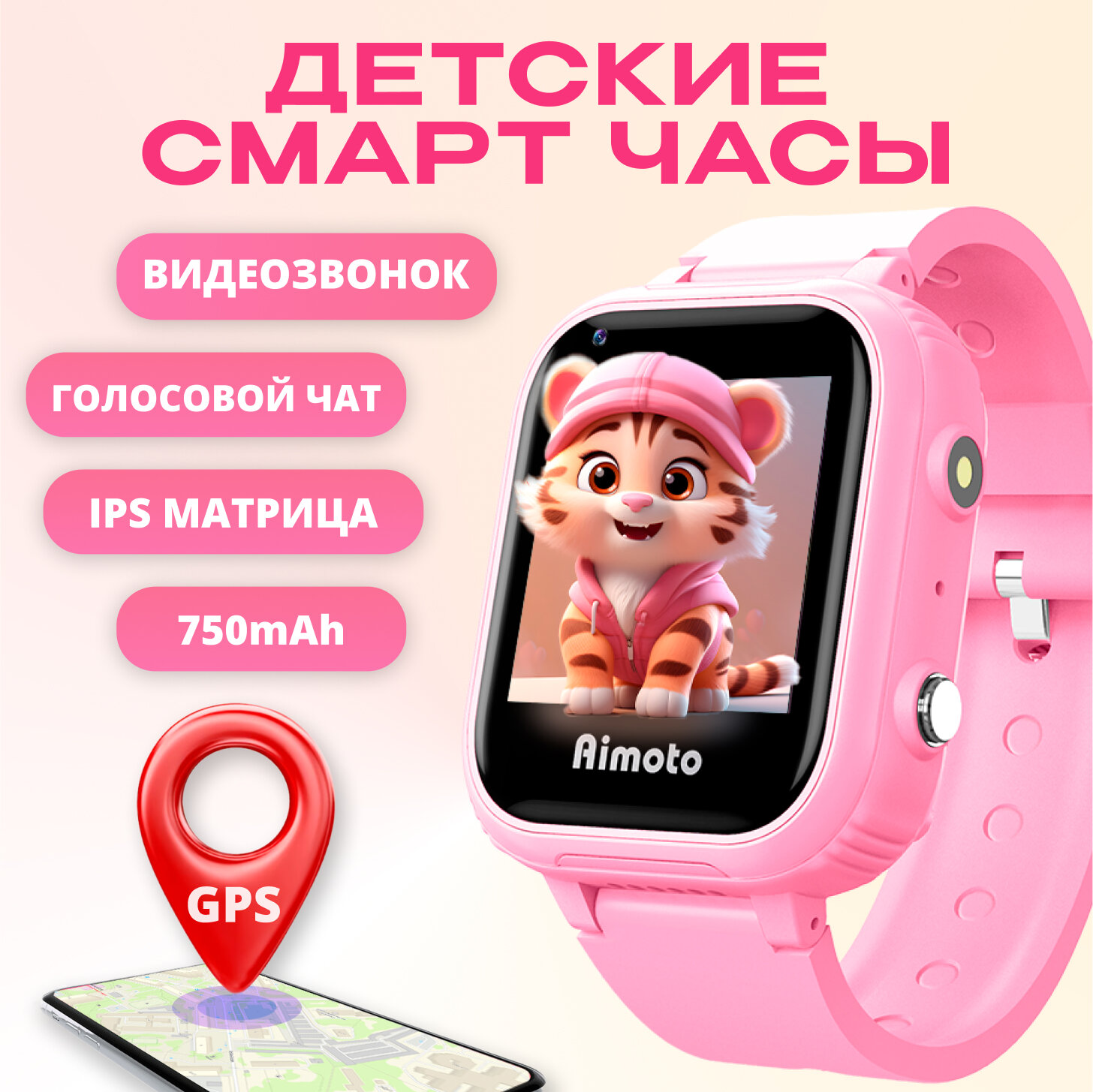 Смарт часы для детей 4G с GPS геолокацией, Aimoto Concept с видеозвонками, звонками, мощная батарея 670 мАч, смарт часы детские 4G с прослушкой, часы детские наручные для мальчиков и девочек, Розовый